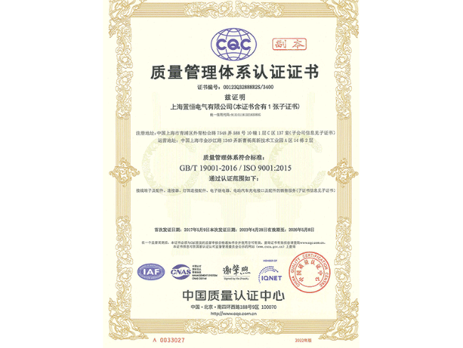 iso9001证书(质量管理体系认证证书)